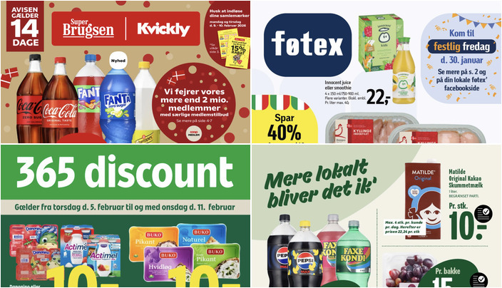 Kvickly tilbyder Coca-Cola, Fanta eller Schweppes i flere varianter til kun 11 kr. pr. flaske. Tilbuddet gælder fra fredag 6. februar til torsdag 19. februar.